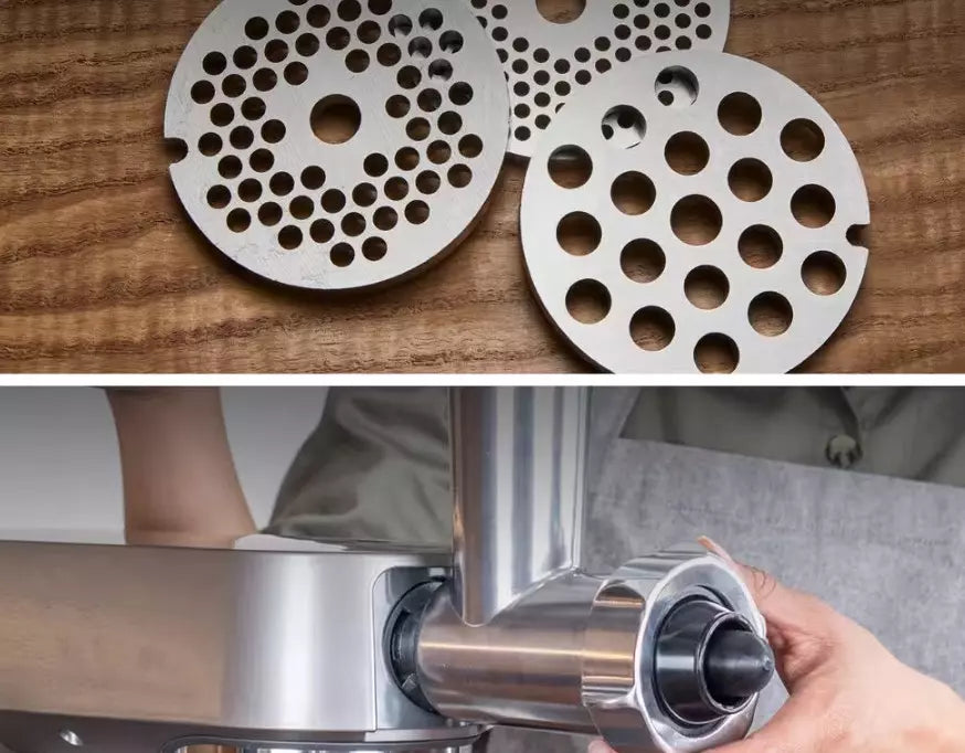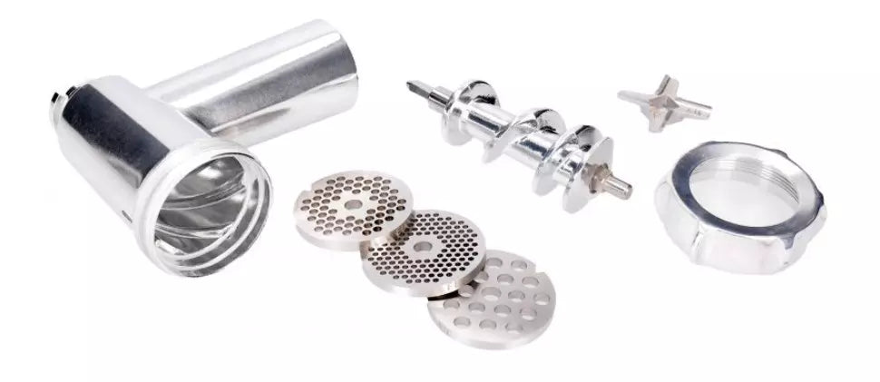 High-performance replacement part that allows you to prepare a wide variety of dishes with its three sieves: fine (3 mm), medium (4.5 mm), and coarse (8 mm). Includes a sausage maker for sausages and a kebbe for special dishes.