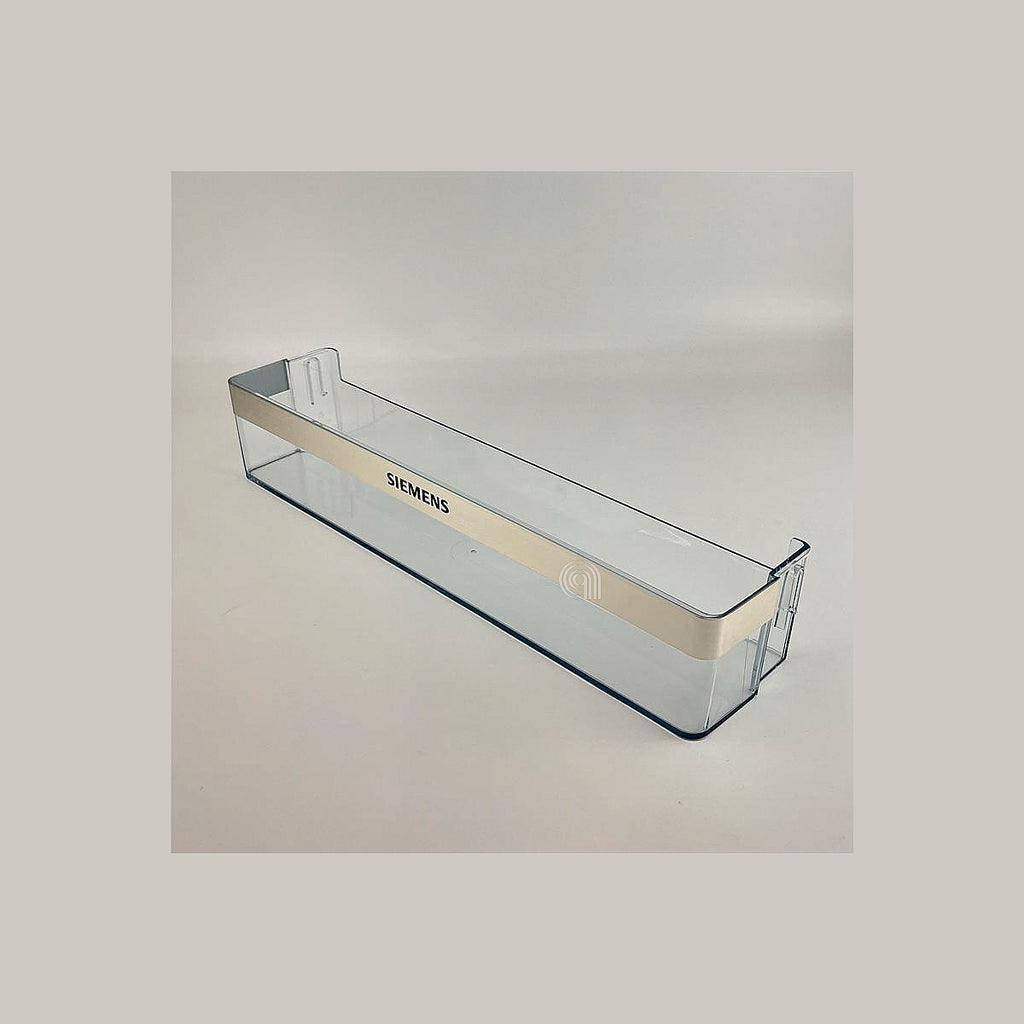 Este balcón original para frigorífico es un repuesto diseñado para modelos de las marcas Bosch y Siemens. Se utiliza como estante o soporte en la puerta del frigorífico, facilitando la organización y almacenamiento de botellas, envases y otros alimentos en el interior del electrodoméstico.