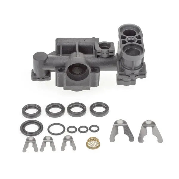 El bloque hidráulico es un componente fundamental en el circuito de agua de las calderas Saunier Duval. Su función principal es dirigir y regular el flujo de agua caliente dentro del sistema de calefacción y agua caliente sanitaria, asegurando una correcta distribución y evitando fugas o pérdidas de presión. Este bloque es compatible con modelos específicos de calderas Saunier Duval y está fabricado para garantizar un montaje sencillo y una larga durabilidad.