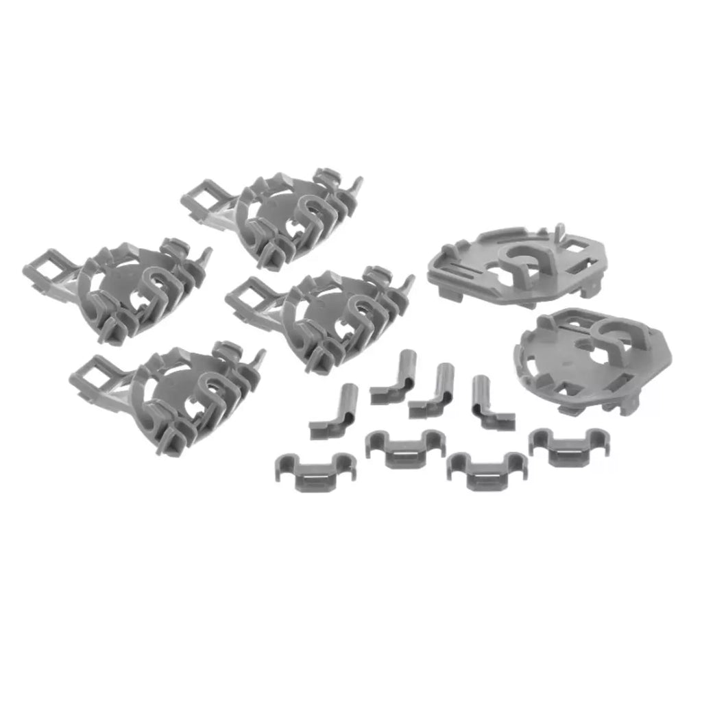 Kit of two bearings and four basket supports for Bosch, Siemens, Balay dishwashers. Spare part adaptable to kitchen appliances.