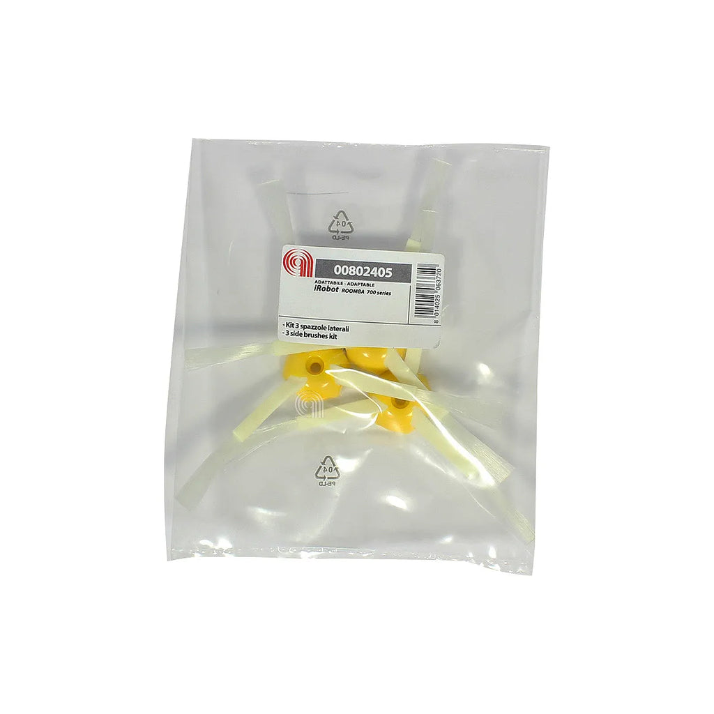 Optimiza la limpieza de tu robot aspirador IROBOT Roomba con este set de 3 cepillos laterales adaptables. Diseñados para las series 500, 600 y 700, estos cepillos de cerdas blancas aseguran una recogida eficiente de suciedad y polvo en esquinas y bordes. Fabricados con materiales de alta calidad, ofrecen una alternativa duradera y económica al recambio original, manteniendo el rendimiento óptimo de tu dispositivo.