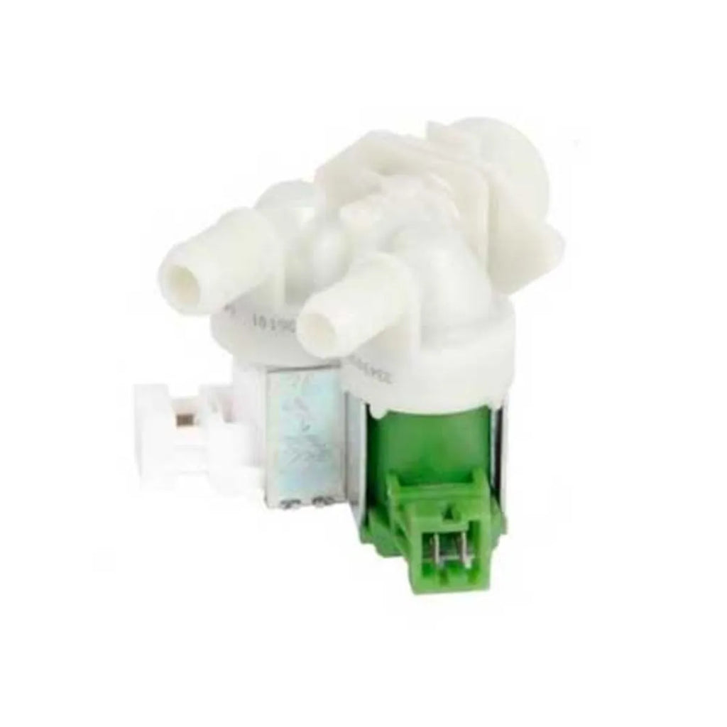 Two-way solenoid valve and two coils for washing machines Zanussi, Aeg, Electrolux. Replacement part for washing appliance repair.
