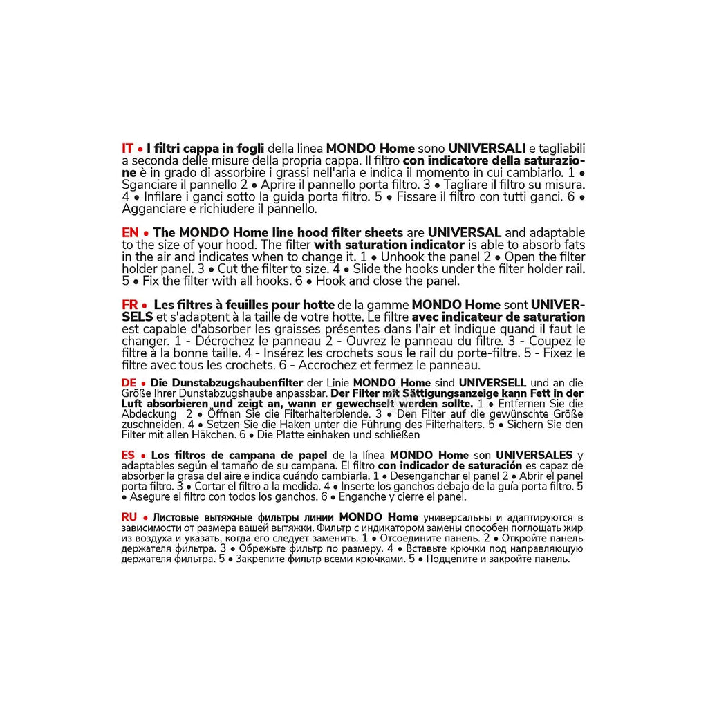 Este filtro es compatible con campanas extractoras de la marca Mondo que utilizan el código de referencia 00701021. Gracias a su diseño universal, también puede adaptarse a modelos similares que requieran un filtro de grasa con dimensiones 45x114 cm.