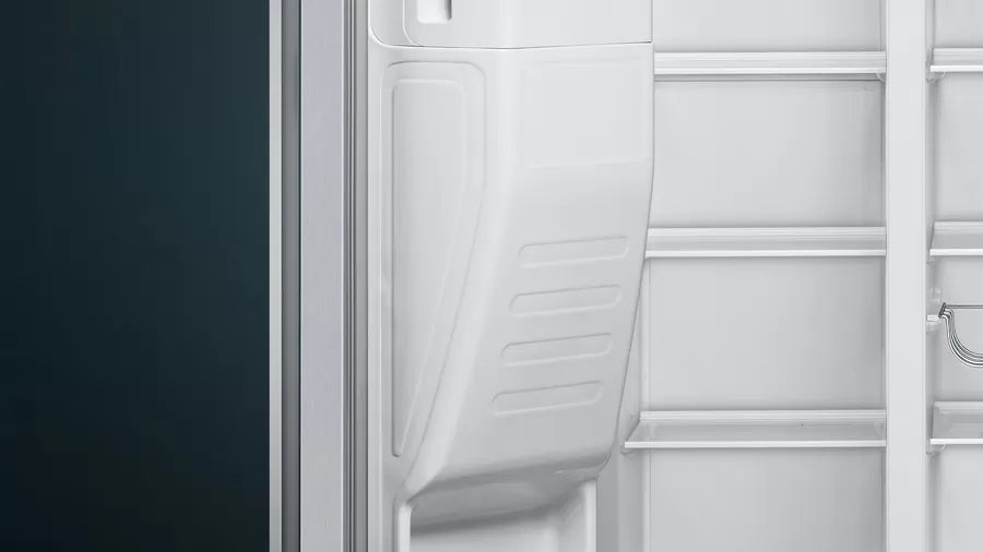 With an elegant design in Brushed Steel Anti-Fingerprint and dimensions of 178.7 x 90.8 cm, the Siemens IQ500 Refrigerator fits perfectly into any modern kitchen. Its Side by Side design offers easy access to both the refrigerator and the freezer, optimizing the available space.