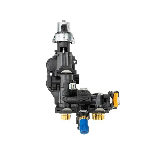El grupo hidráulico es un componente esencial en calderas de calefacción que controla el flujo y retorno del agua dentro del circuito hidráulico. Este grupo hidráulico específico para calderas Ariston integra la válvula de tres vías y el conjunto de retorno, permitiendo dirigir el agua caliente hacia el circuito de calefacción o hacia el vaso de expansión según las necesidades del sistema.