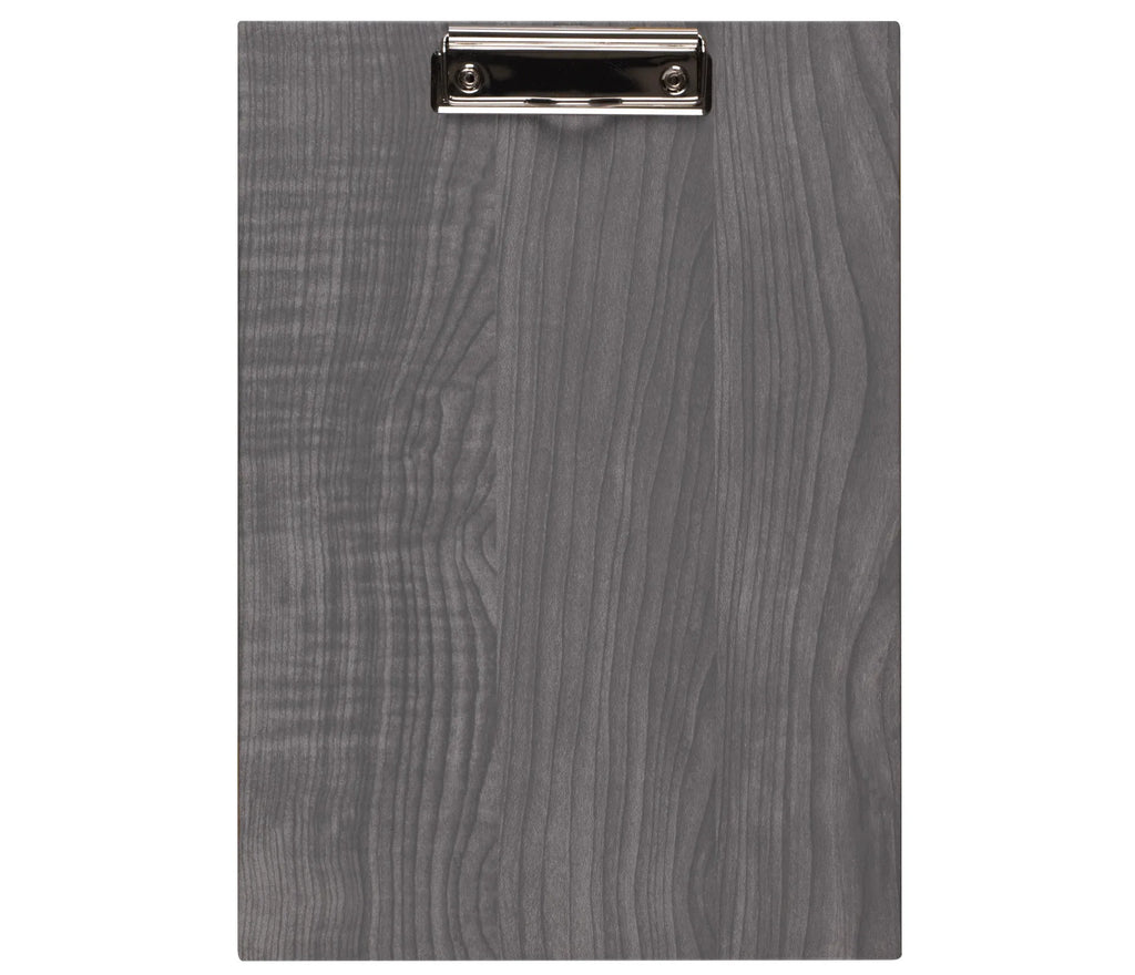 With silver-colored metal clip that holds the menu sheet.