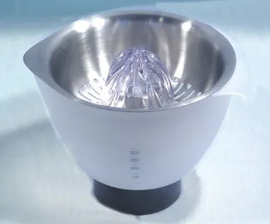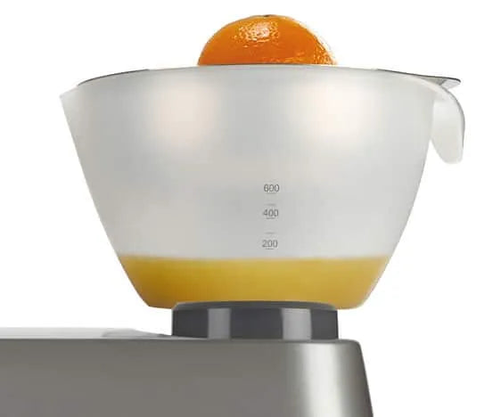 The citrus juicer ensures that every drop of the fruit is collected in the 600 ml container. Citrus fruits are used in many dishes to enhance flavor and give a touch to many recipes. Pour juice directly from the container with the easy-pour spout and handle. The stainless steel strainer ensures that no pulp or seeds escape into the juice. easy pour container.