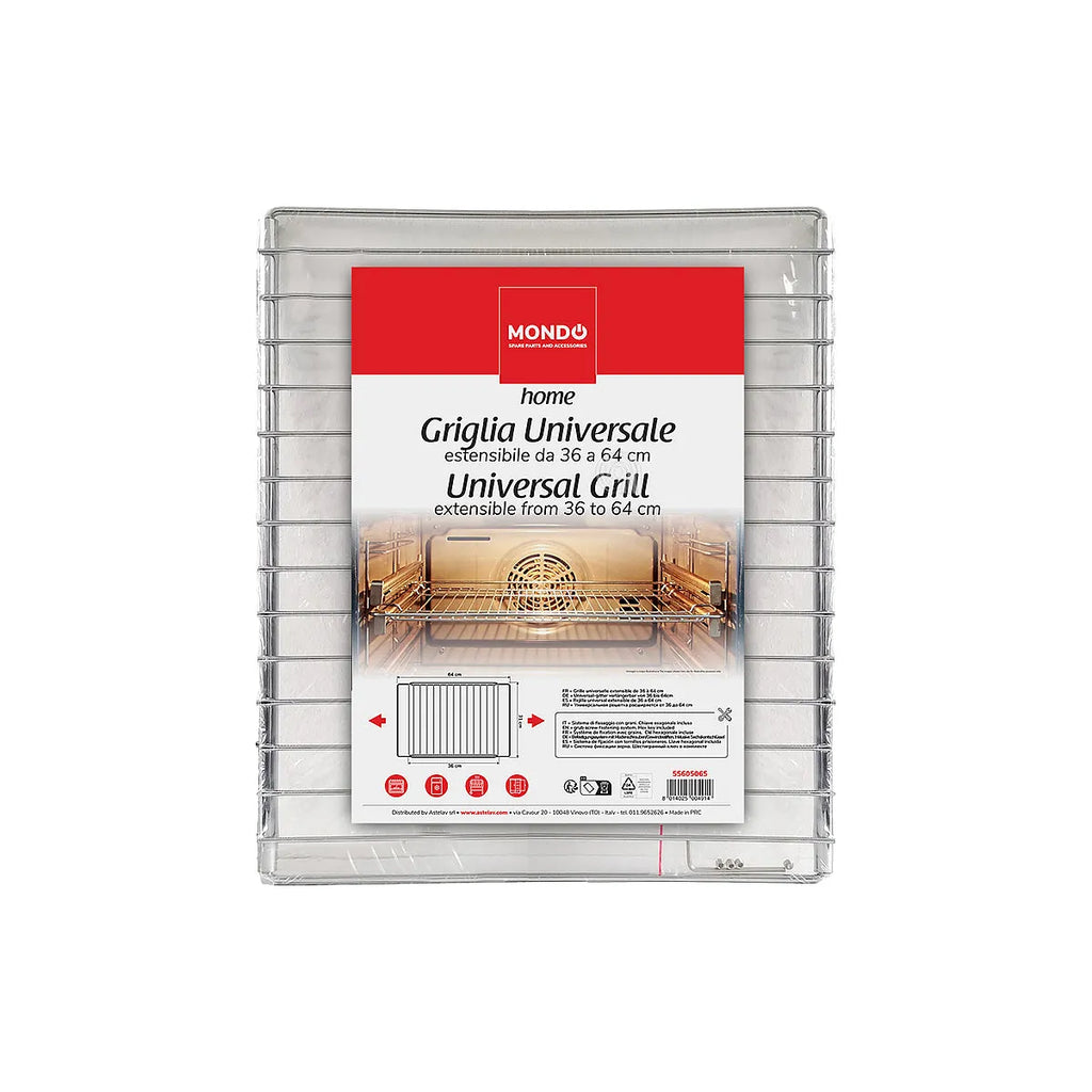 Descubre la rejilla extensible UNIVERSALE MONDO, una solución adaptable y versátil para tu horno. Fabricada con materiales de alta calidad, esta rejilla es ideal para reemplazar piezas dañadas o para añadir espacio adicional en tu electrodoméstico. Su diseño permite ajustarse a diversas dimensiones, garantizando una compatibilidad amplia con diferentes modelos de hornos. Perfecta para cocinar, asar o simplemente para organizar el interior de tu horno, esta rejilla combina funcionalidad y durabilidad para el uso diario en tu cocina.