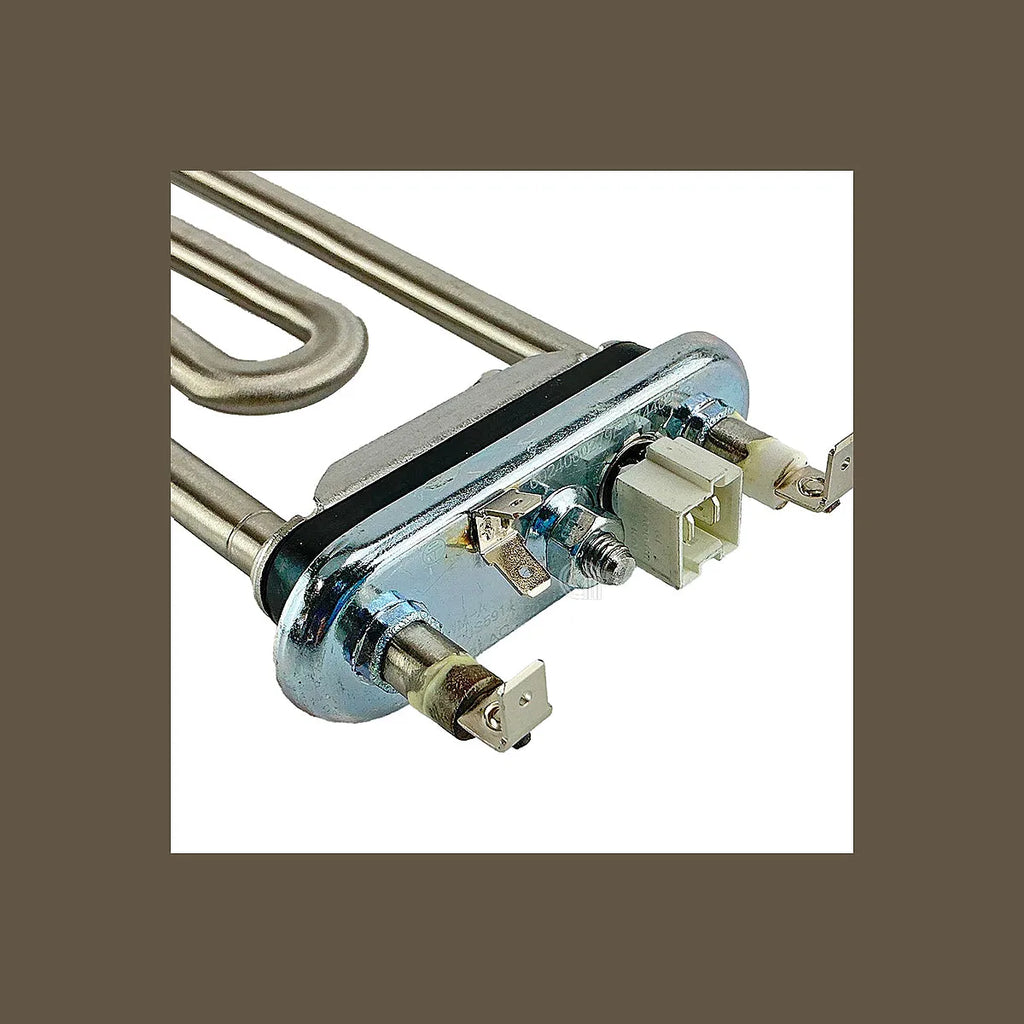 Resistencia de 1800W para lavadoras de las marcas HAIER y CANDY. Este repuesto original garantiza la compatibilidad y el rendimiento óptimo de tu electrodoméstico. Fabricada con materiales de alta calidad, esta resistencia asegura un calentamiento eficiente del agua, fundamental para un lavado impecable. Ideal para sustituir una resistencia dañada o desgastada y prolongar la vida útil de tu lavadora.