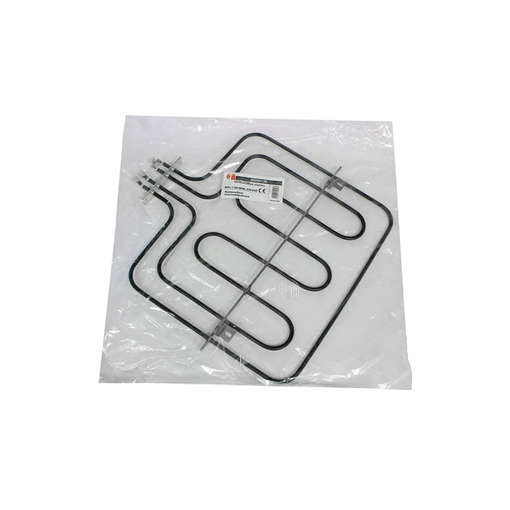 ELECTROLUX, AEG, REX, ZANUSSI. Recambio adaptable de resistencia superior para horno. Potencia de 2550W (800W + 1750W). Este componente es esencial para el correcto funcionamiento del grill y para alcanzar la temperatura de cocción deseada en su electrodoméstico. Asegúrese de que el repuesto es compatible con su modelo antes de realizar la compra.
