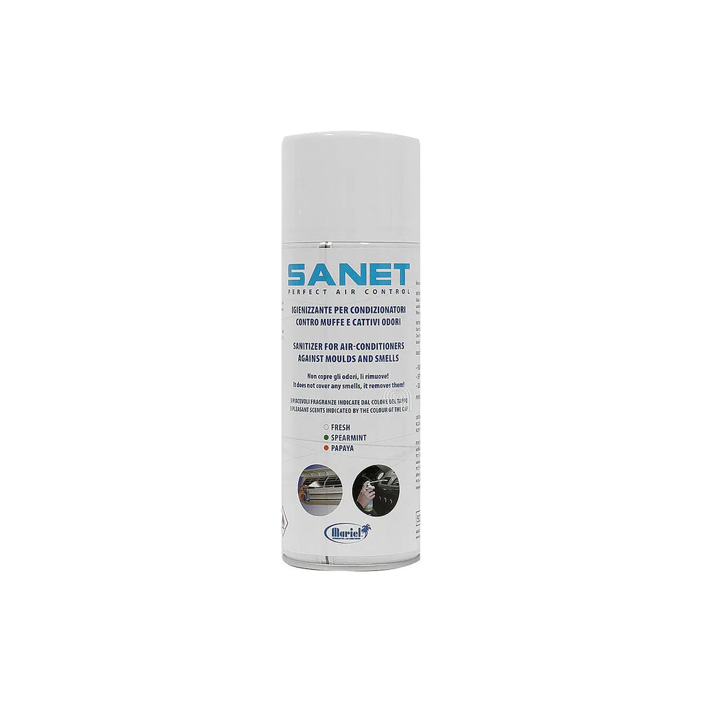 El spray igienizante SANET de UNIVERSALE es un producto adaptable diseñado específicamente para la limpieza y desinfección de sistemas de aire acondicionado. Su fórmula avanzada actúa eficazmente contra la proliferación de mohos y la eliminación de malos olores, dejando una agradable fragancia a menta (Spearmint). Ideal para mantener un ambiente fresco y saludable en su hogar u oficina, este spray de 400ml garantiza un funcionamiento óptimo y una mayor higiene de su equipo de climatización. Fácil de usar y de aplicación directa, es la solución perfecta para el mantenimiento regular de su aire acondicionado.