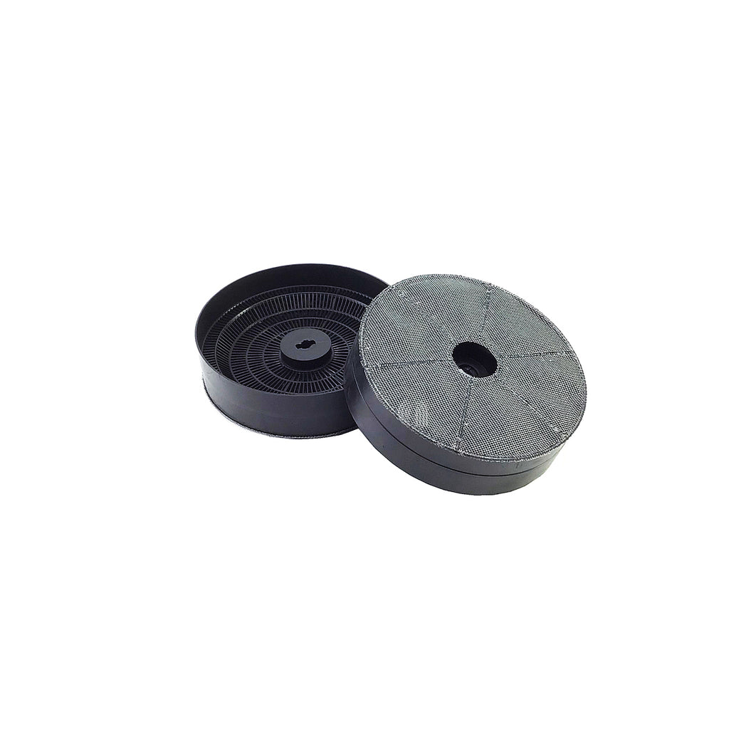 Este set incluye 2 filtros de carbón activo circulares GPZ 600 originales, diseñados para campanas extractoras. Son recambios esenciales para mantener la calidad del aire en la cocina, filtrando olores y grasas durante la extracción.
