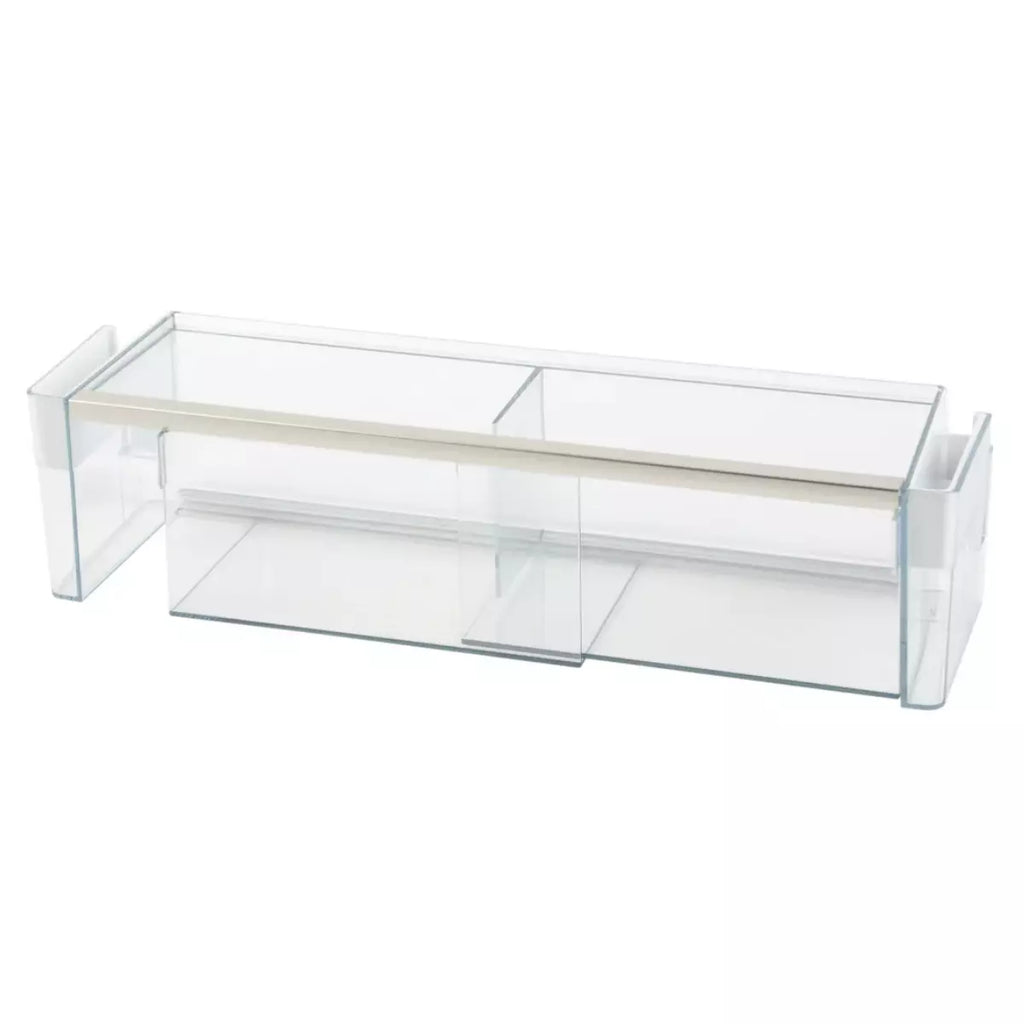 Genuine replacement door bottle rack for Siemens refrigerators , ideal for replacing damaged or broken compartments. This lower shelf is designed to securely store bottles, cartons, or other containers in the back of your refrigerator door, maximizing the available space.