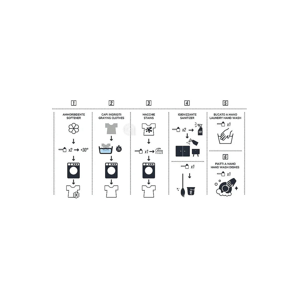 • Función: blanqueador natural, desinfectante y suavizante para lavado doméstico
