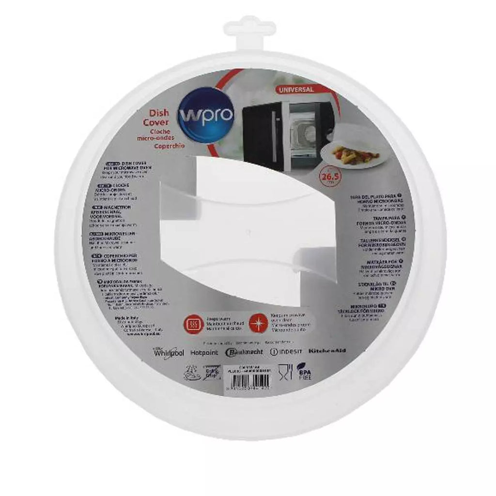 The Wpro microwave lid is an essential accessory for keeping your appliance clean and food hot. With a diameter of 26.5 cm, this universal lid features an ergonomic design with steam release holes. Ideal for preventing splatters and maintaining food temperature.