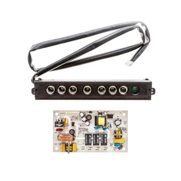 Este teclado es un panel de control para campanas extractoras de la marca Cata. Permite gestionar las funciones básicas del electrodoméstico, como la velocidad del ventilador, iluminación y temporizador. Está diseñado para reemplazar teclados originales que hayan dejado de funcionar correctamente debido al desgaste o daños en las teclas o conexiones.