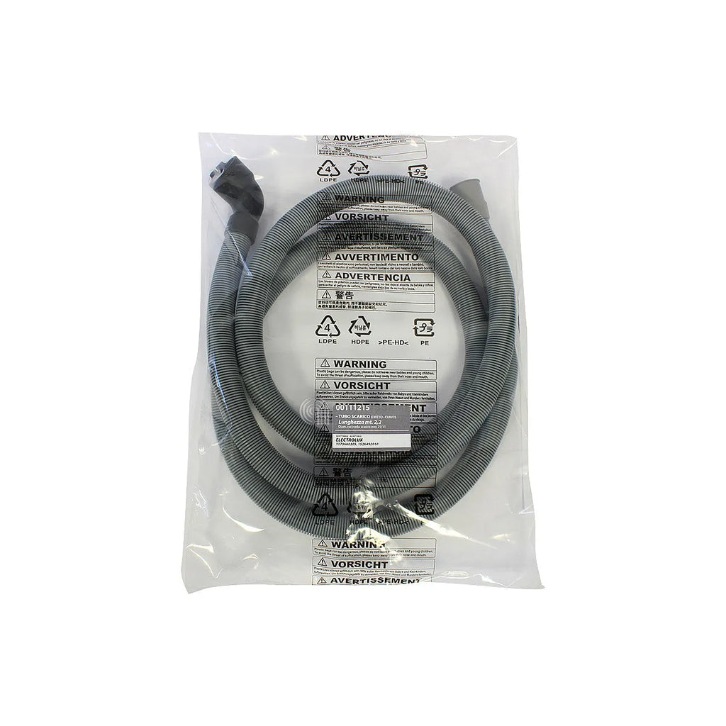 Tubo de desagüe **Original (OEM)** de la marca **ELECTROLUX**, compatible con una amplia gama de lavavajillas y lavadoras de las marcas del grupo, incluyendo **ZANUSSI** y **AEG**. Esta manguera de alta calidad garantiza un drenaje eficiente y seguro, evitando fugas y problemas de funcionamiento. La pieza es un recambio original, lo que asegura un ajuste perfecto y la máxima durabilidad. Es ideal para sustituir mangueras agrietadas o dañadas. Sus dimensiones aproximadas son 2200 mm de longitud y bocas de 20/30 mm de diámetro. La referencia principal de Electrolux es 140003571019, y sustituye a múltiples referencias de Zanussi.